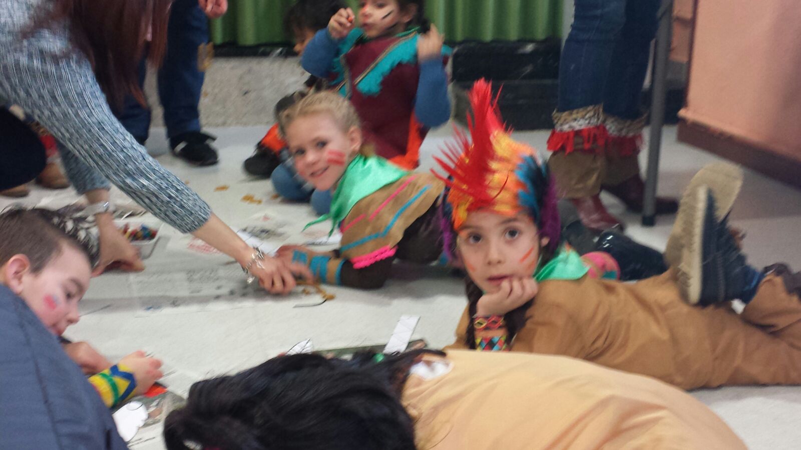 Aquí estamos super atentos viendo un ppt con el que aprendimos un montonazo de cosas sobre los indios: en qué lugar vivían, cómo se llamaban sus casas y de qué estaban hechas, cómo eran físicamente, qué obtenían de la piel de los animales que cazaban, para qué utilizaban las plumas de las águlias y las garras de los osos, qué utilizaban para cazar y luchar, qué es un totem, las diferentes tribus indias, qué es un atrapasueños, por qué y cuándo utilizaban las pinturas de guerra y la pipa de la paz, quiénes eran los chamanes, cómo se comunicaban y algunas de sus danzas.